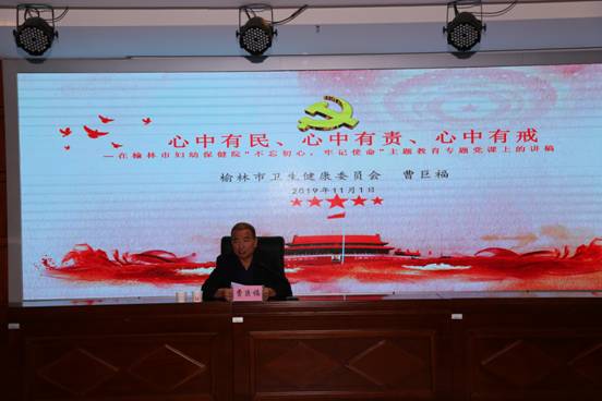 根据市委和市卫健委关于“不忘初心、牢记使命”主题教育部署要求,2019年11月1日上午,榆林市妇幼保健院在八楼会议室举办主题教育专题党课,市卫健委副主任曹巨福、市妇幼保健院院长王怀升作分别主题党课,我院全体干部职工参加党课学习。